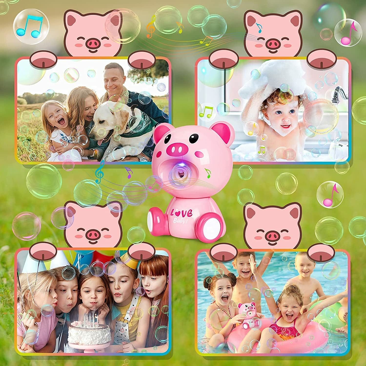 Bubbles Love Pig Blowing Machine for Kids Outdoor and Party Play. Adorable bubble machine! Kids love it. Easy to use. Entertainment for kids and toddlers. creates tons of bubbles and keeps children entertained for a long time, making it an awesome gift for 4 year-olds. Have lots of fun at your child’s next party or playing together with this battery operated bubble machine. In fact, Piggy bubble machine will appeal to kids of all ages. first just turn on the switch and bubbles will be automatically ejected from the mouth.